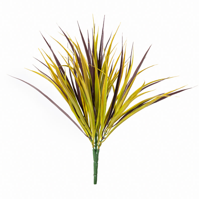 Artificial Liriope, or broad-leaf grass sprays in gray-green are made of low density polyethylene with inherent UV stability, to last for minimum 5 years in outdoor weather conditions. Use these to built your own outdoor planter full of bright color grasses that will not fade, and add maintenance-free accents to exterior spaces. 13" of grass on base pick for 16" total length.